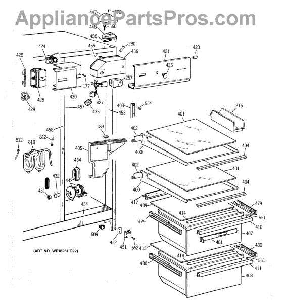 Cantilever shelf track for refrigerators. Mounts to the interior wall to support adjustable shelving. Replace if cracked, broken, or damaged.