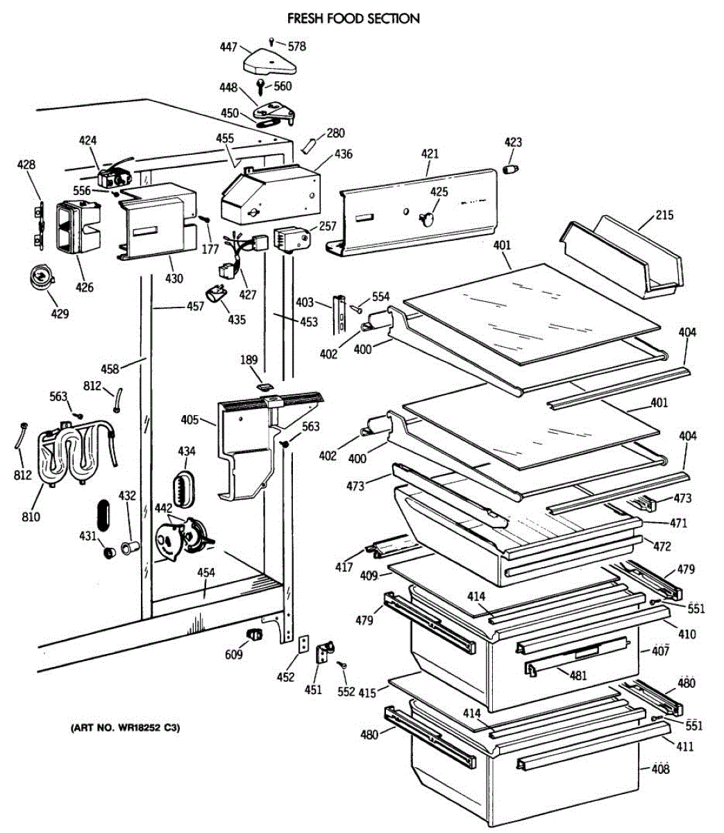 This left-hand drawer slide assembly mounts inside the refrigerator's fresh food section. It supports the shelf/cover and guides the drawer on its track, restoring smooth operation and proper alignment when the original rail is cracked or worn.