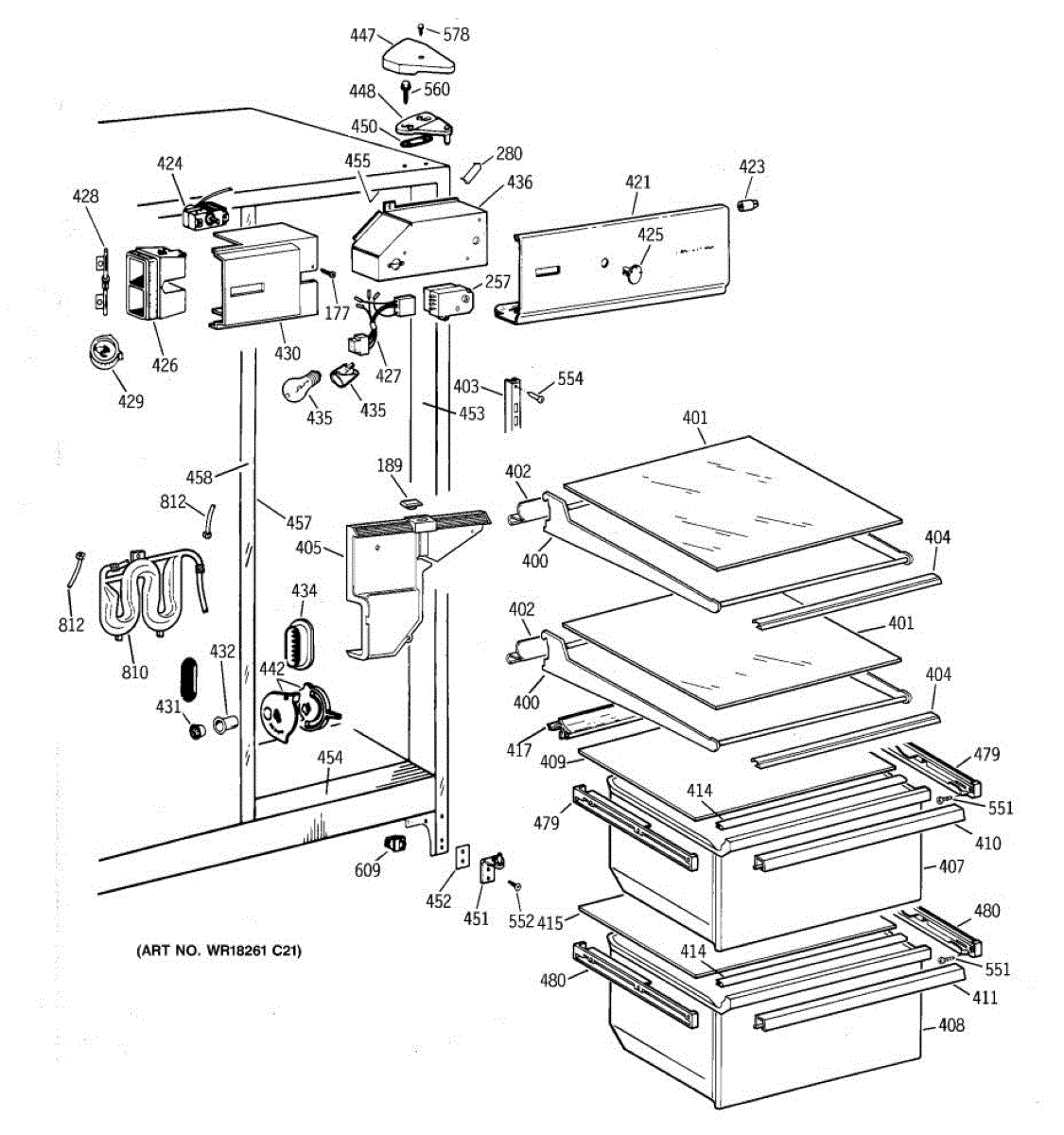 This left-hand drawer slide assembly mounts inside the refrigerator's fresh food section. It supports the shelf/cover and guides the drawer on its track, restoring smooth operation and proper alignment when the original rail is cracked or worn.