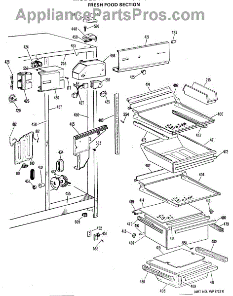 Parts for Ge TFX22RLE: 03 - Fresh Food Section Parts