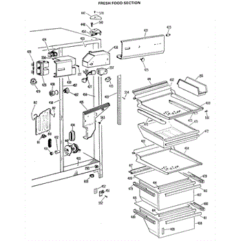 Parts for Ge TFX24FLB: 04 - Fresh Food Section Parts