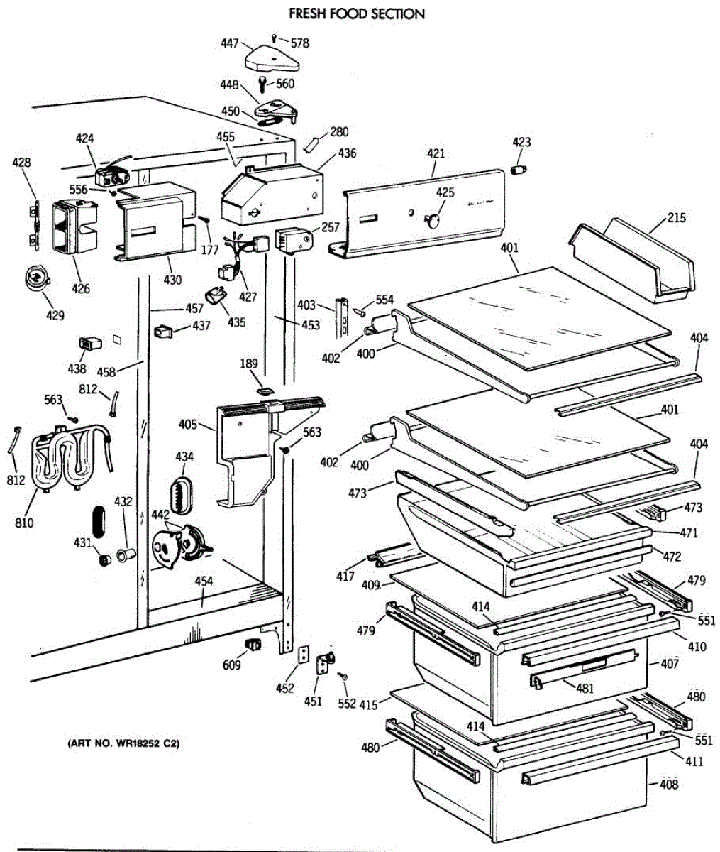 This left-hand drawer slide assembly mounts inside the refrigerator's fresh food section. It supports the shelf/cover and guides the drawer on its track, restoring smooth operation and proper alignment when the original rail is cracked or worn.