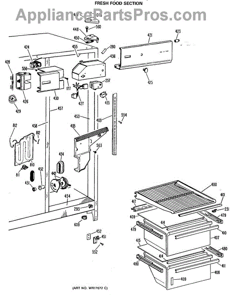 The Drawer Slide Assembly is an OEM part for GE refrigerators. It allows for smooth and easy movement of the refrigerator drawers, ensuring convenient access to stored food items. It provides the necessary support and stability to hold the weight of the contents within the drawers. The slide measures approximately 16 1/4 inches long.
