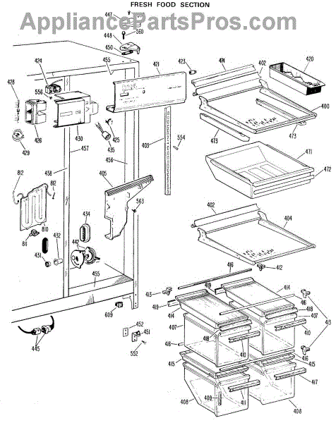 Parts for Ge TFX24RGB: 05 - Fresh Food Section Parts