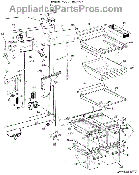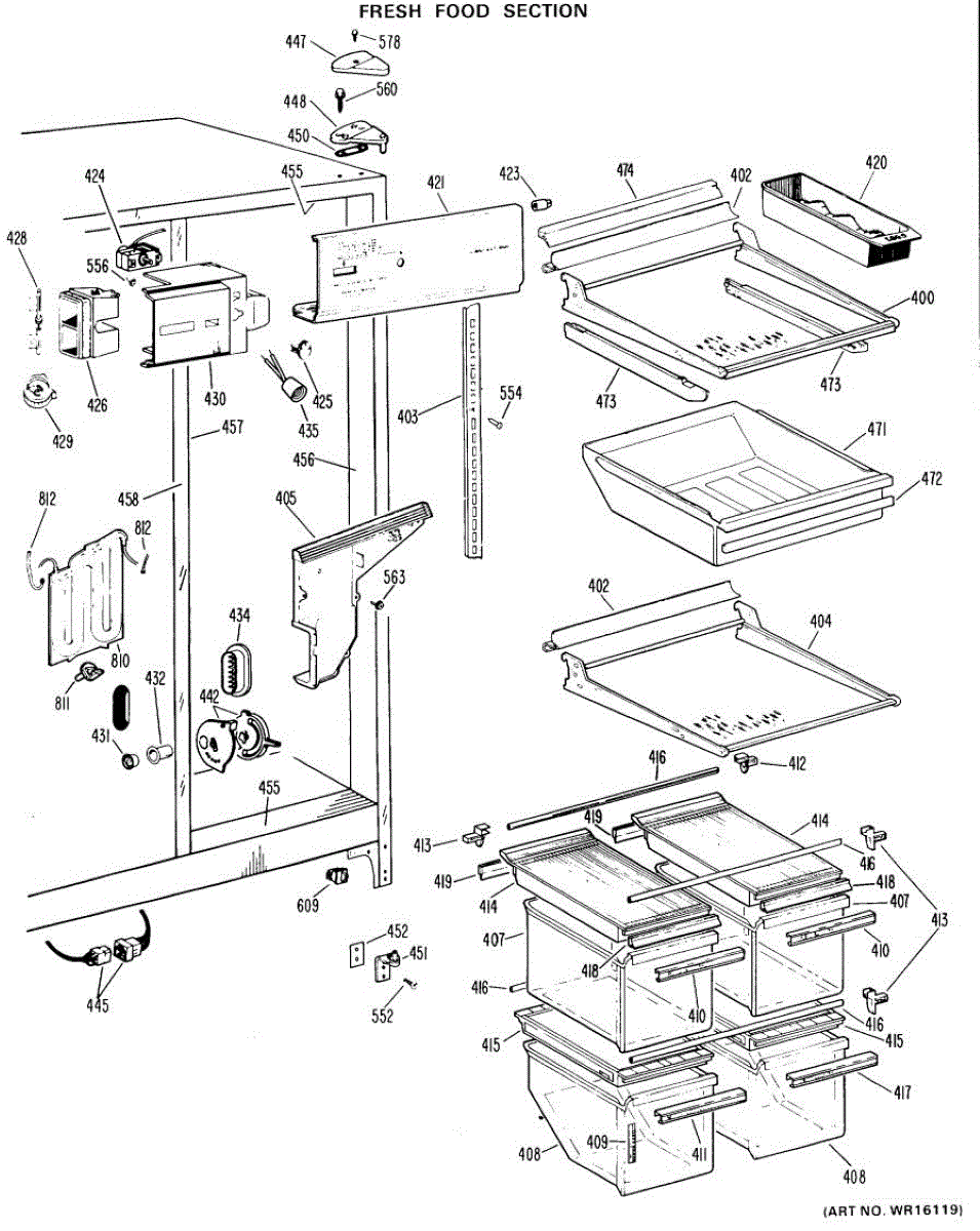 Parts for Ge TFX24RGC: 04 - Fresh Food Section Parts