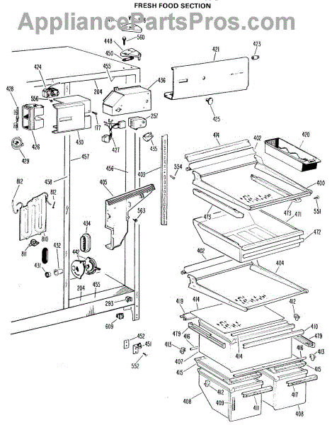 Parts for Ge TFX24RKB: 04 - Fresh Food Section Parts