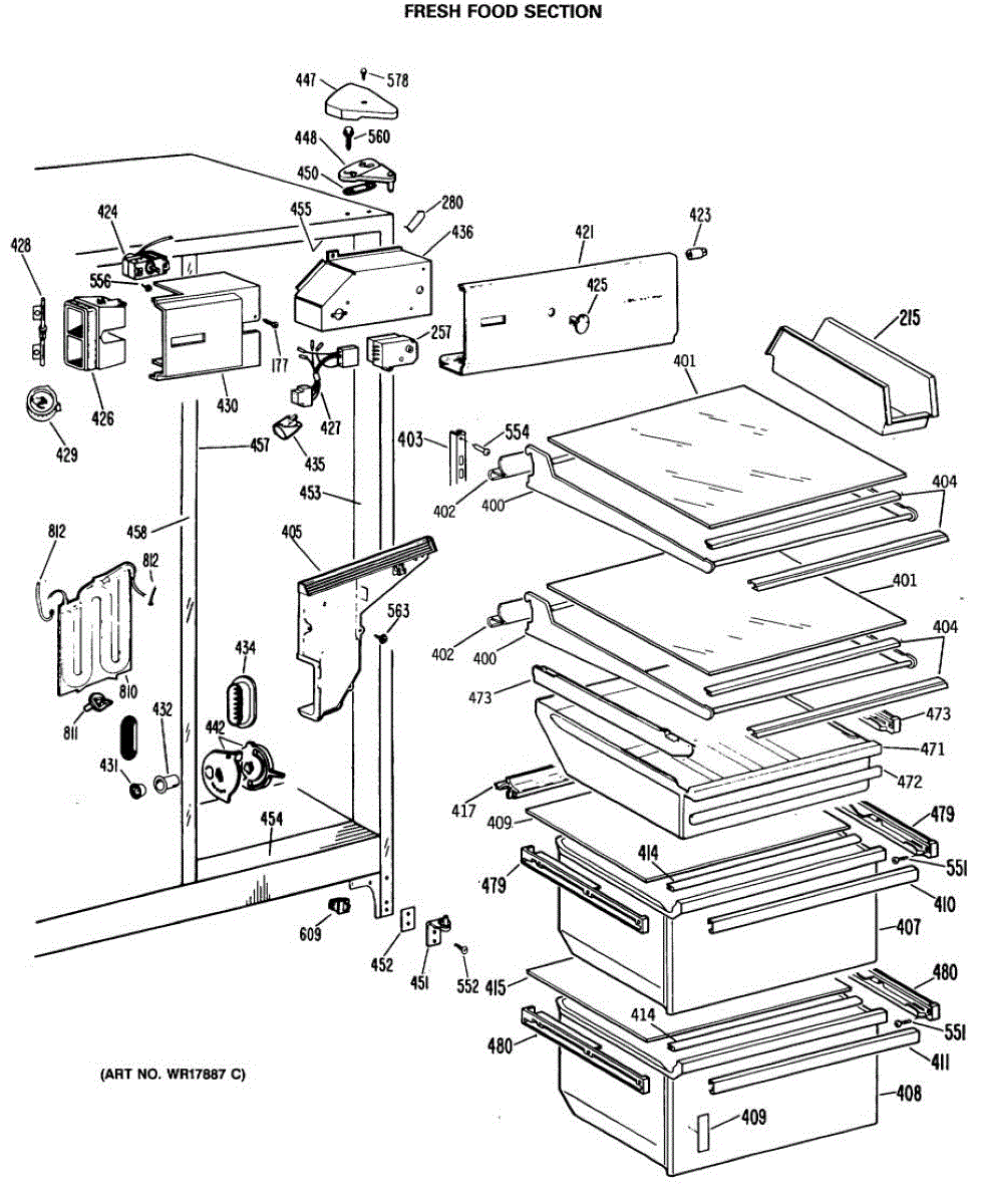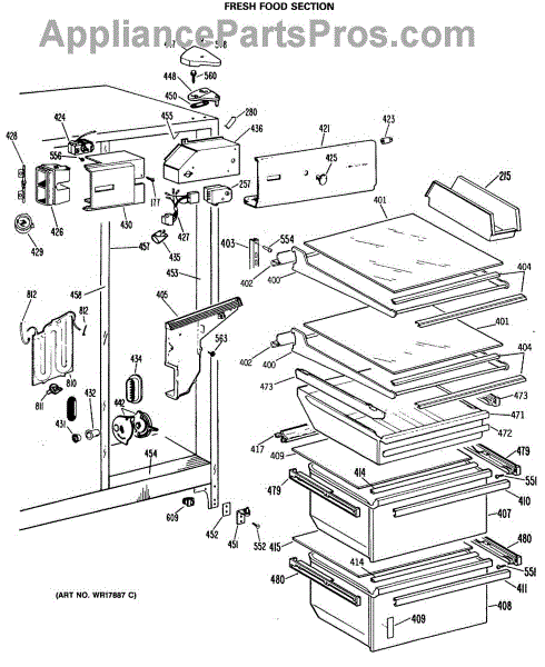 Parts for Ge TFX24RMA: 04 - Fresh Food Section Parts