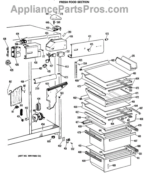 Parts for Ge TFX24VRAAD: 04 - Fresh Food Section Parts