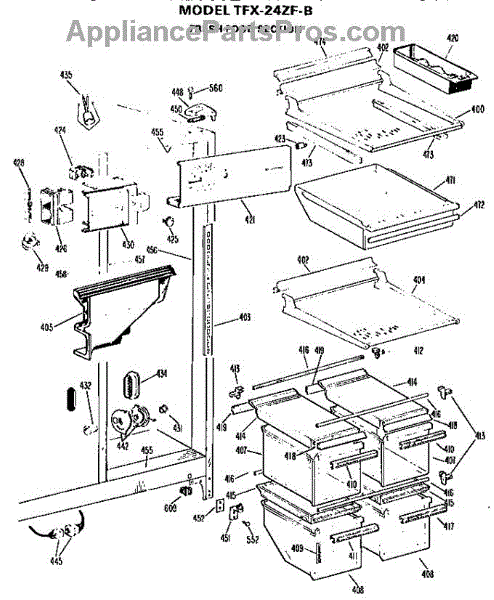 Parts for Ge TFX24ZFB: Fresh Food Section Parts