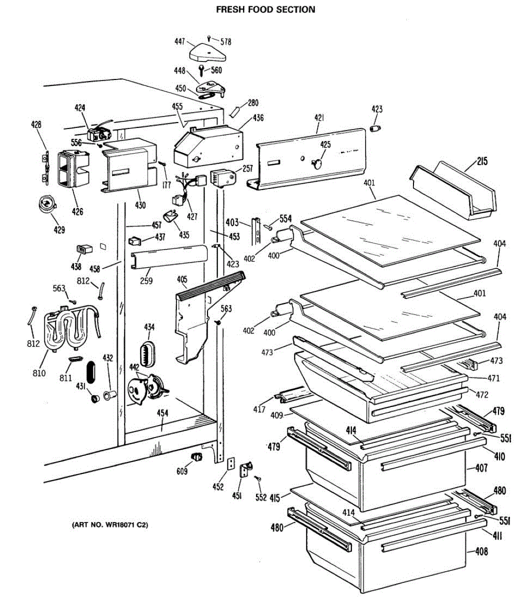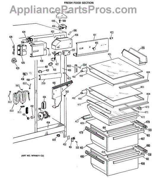 Parts for Ge TFX24ZFSAWH: 04 - Fresh Food Section Parts