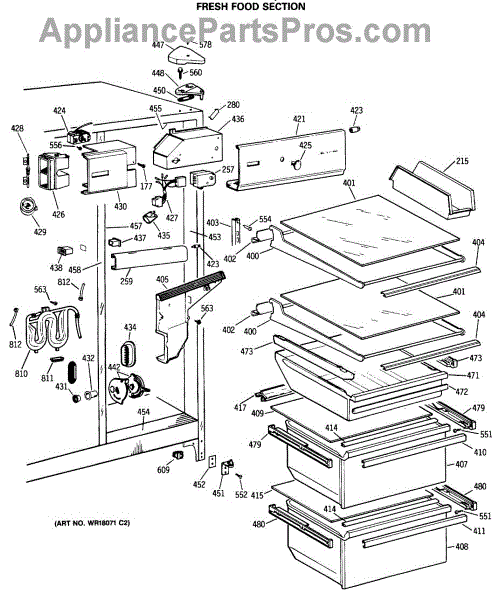 Parts for Ge TFX24ZFSBWH: 04 - Fresh Food Section Parts