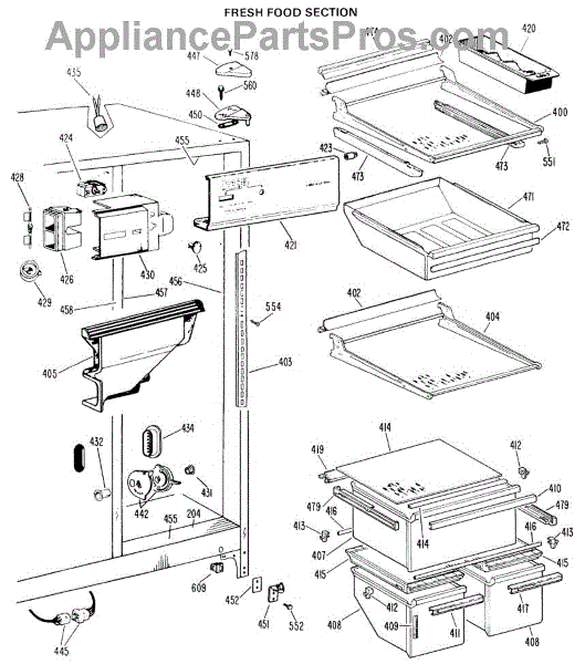 The Light Switch is an OEM replacement part for GE refrigerators. It controls the interior light, turning it on when the refrigerator door is opened and off when the door is closed. This ensures proper illumination for visibility when accessing the refrigerator's contents.