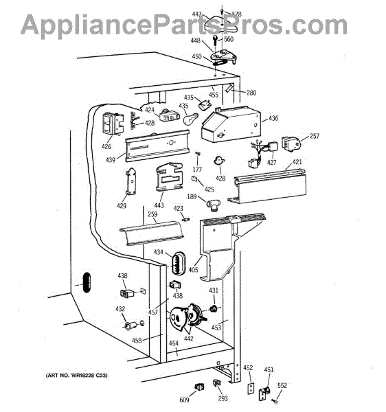 The Light Switch is an OEM replacement part for GE refrigerators. It controls the interior light, turning it on when the refrigerator door is opened and off when the door is closed. This ensures proper illumination for visibility when accessing the refrigerator's contents.