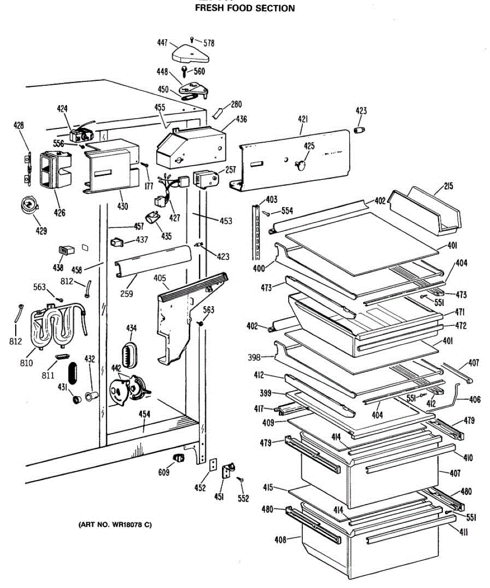 A bad Drawer Slide Assembly can occur due to wear and tear over time, excessive load strain, or damage caused by accidental mishandling. If the slide assembly becomes worn, bent, or broken, it can lead to issues such as difficulty in opening or closing the refrigerator drawers, as well as potential damage to the drawers or their contents.