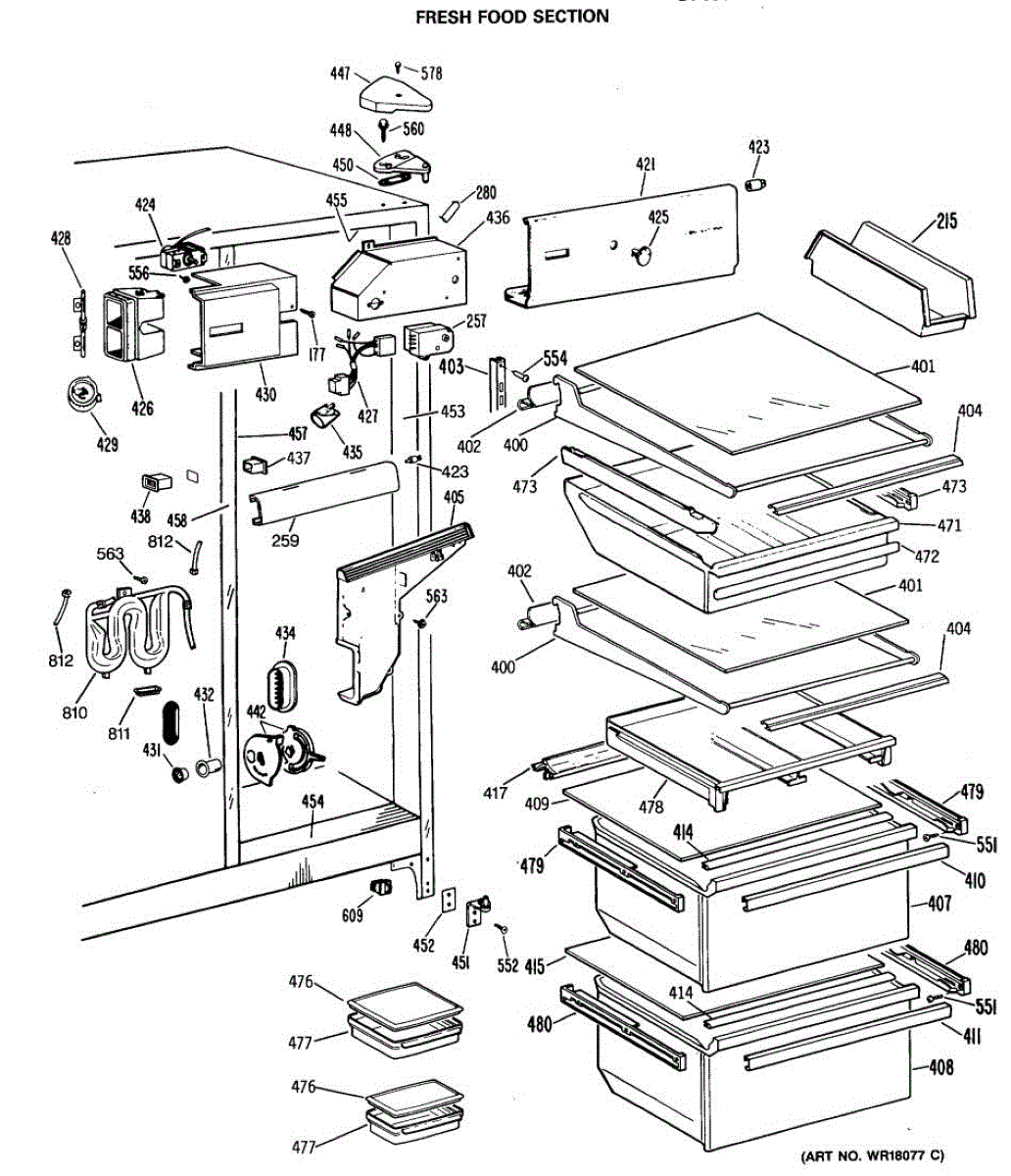 Causes for a malfunctioning Crisper Drawer Slide can include wear and tear from regular use, the accumulation of debris obstructing the slide's path, or damage incurred from overloading the drawer. This GE replacement part is also compatible with Hotpoint, RCA, and some Kenmore models. For matching left-hand side order WR72X209.