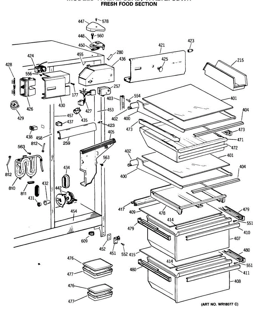 Causes for a malfunctioning Crisper Drawer Slide can include wear and tear from regular use, the accumulation of debris obstructing the slide's path, or damage incurred from overloading the drawer. This GE replacement part is also compatible with Hotpoint, RCA, and some Kenmore models. For matching left-hand side order WR72X209.
