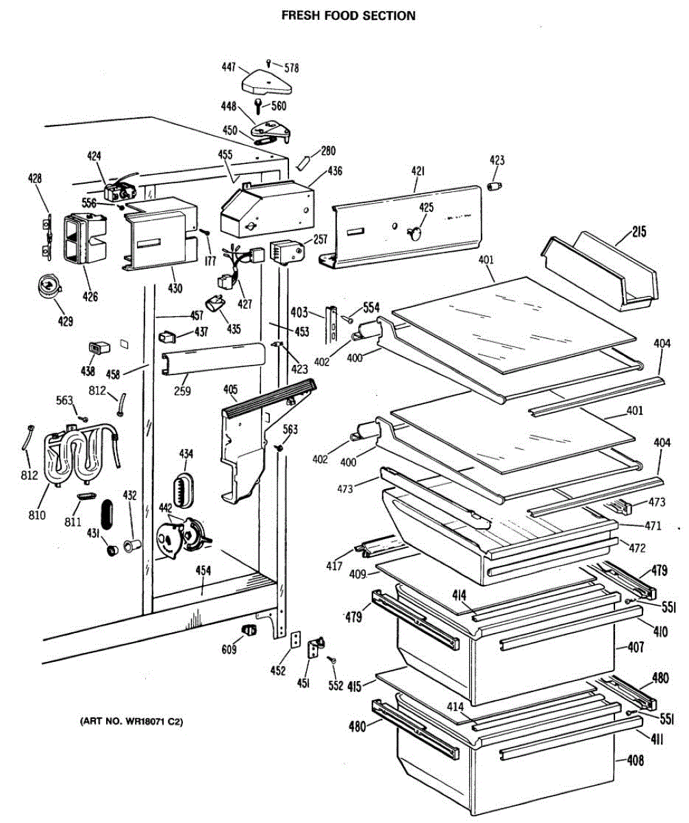 Causes for a malfunctioning Crisper Drawer Slide can include wear and tear from regular use, the accumulation of debris obstructing the slide's path, or damage incurred from overloading the drawer. This GE replacement part is also compatible with Hotpoint, RCA, and some Kenmore models. For matching left-hand side order WR72X209.