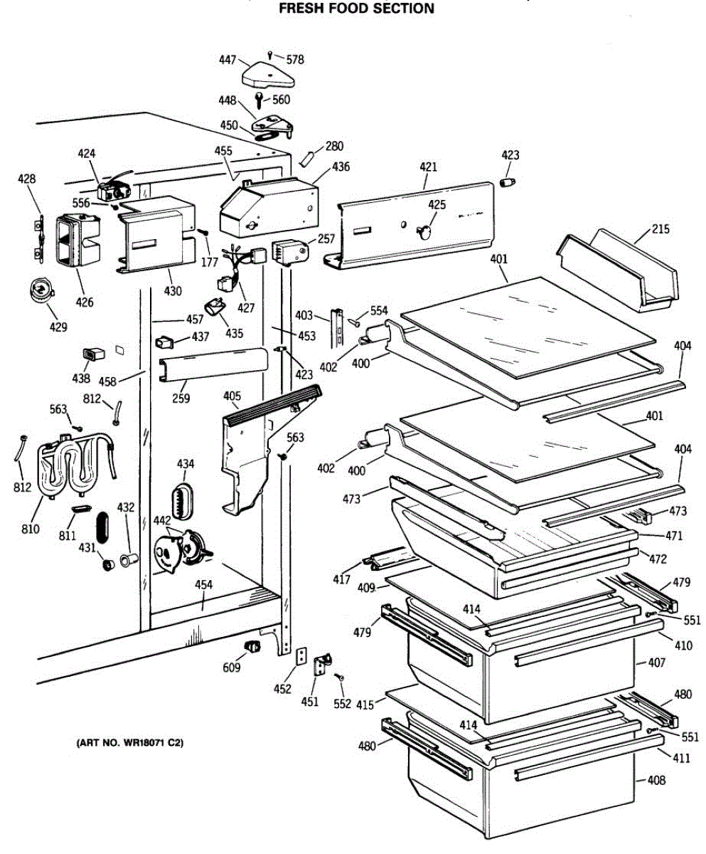 Causes for a malfunctioning Crisper Drawer Slide can include wear and tear from regular use, the accumulation of debris obstructing the slide's path, or damage incurred from overloading the drawer. This GE replacement part is also compatible with Hotpoint, RCA, and some Kenmore models. For matching left-hand side order WR72X209.
