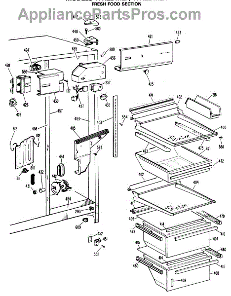 Parts for Ge TFXE24RLR: 04 - Fresh Food Section Parts