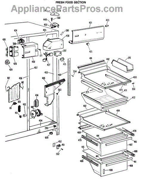 Parts for Ge TFXH24RLR: 04 - Fresh Food Section Parts