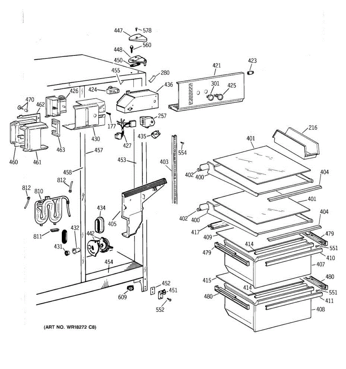The Drawer Slide Assembly is an OEM part for GE refrigerators. It allows for smooth and easy movement of the refrigerator drawers, ensuring convenient access to stored food items. It provides the necessary support and stability to hold the weight of the contents within the drawers. The slide measures approximately 16 1/4 inches long.