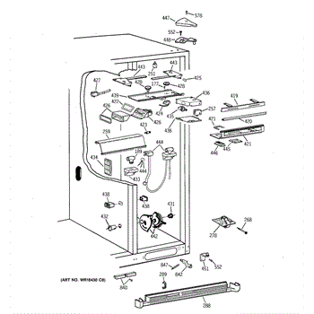 The Door Closure Spring is an OEM replacement part for GE refrigerators. It provides balanced tension to assist the door hinges and latch mechanism in securely closing the refrigerator door. The spring helps the door shut fully while preventing it from slamming closed abruptly.