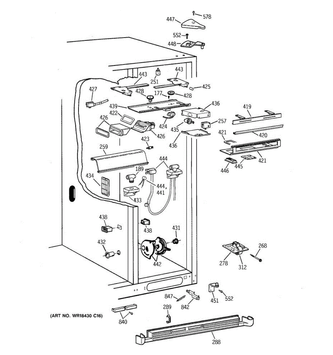 The Door Closure Spring is an OEM replacement part for GE refrigerators. It provides balanced tension to assist the door hinges and latch mechanism in securely closing the refrigerator door. The spring helps the door shut fully while preventing it from slamming closed abruptly.