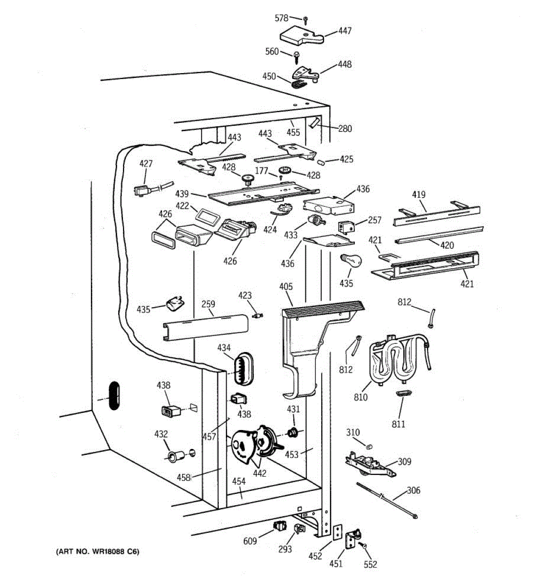 This water tank is the internal reservoir that stores and chills water for the refrigerator dispenser. Replacing a damaged tank helps restore proper dispenser flow and prevents water from pooling inside the fresh food compartment. What it does: