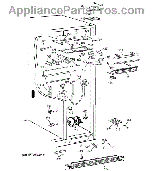 The Door Closure Spring is an OEM replacement part for GE refrigerators. It provides balanced tension to assist the door hinges and latch mechanism in securely closing the refrigerator door. The spring helps the door shut fully while preventing it from slamming closed abruptly.