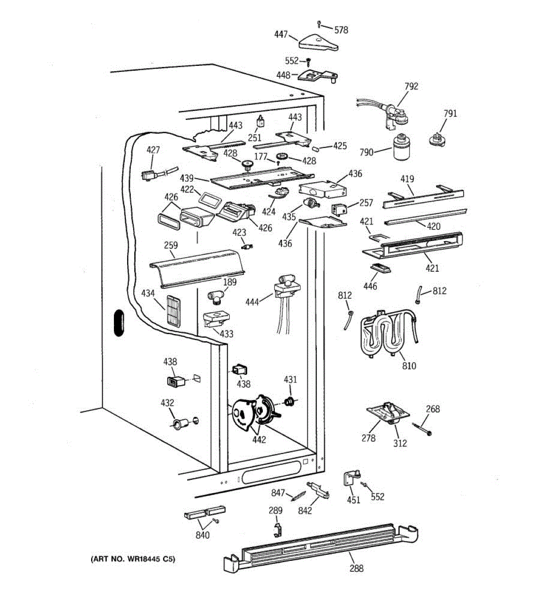 This water tank is the internal reservoir that stores and chills water for the refrigerator dispenser. Replacing a damaged tank helps restore proper dispenser flow and prevents water from pooling inside the fresh food compartment. What it does: