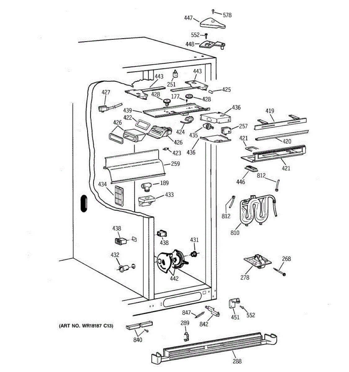 This water tank is the internal reservoir that stores and chills water for the refrigerator dispenser. Replacing a damaged tank helps restore proper dispenser flow and prevents water from pooling inside the fresh food compartment. What it does: