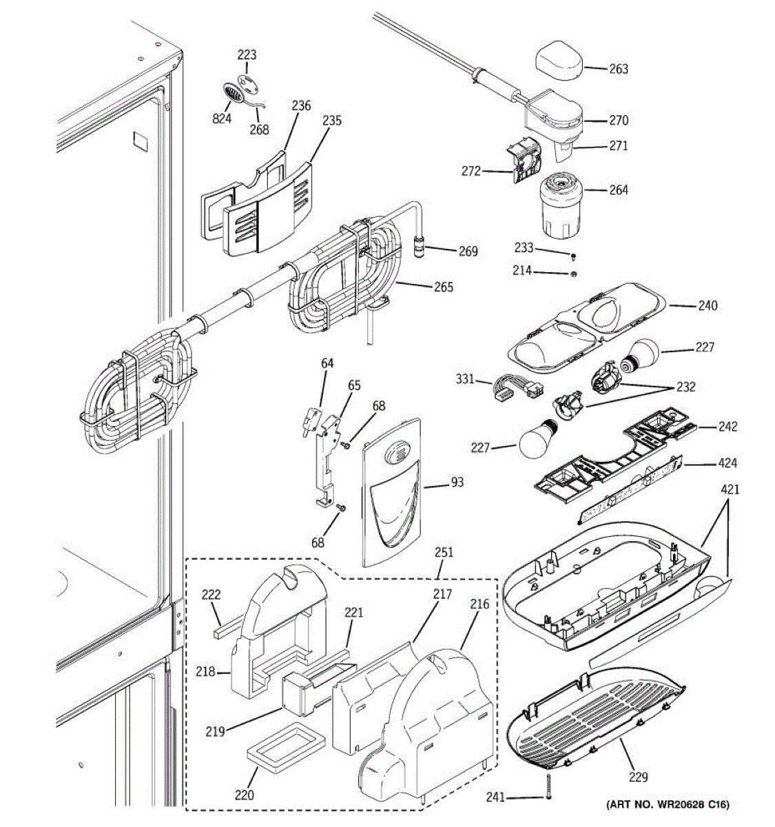 The Dispenser Assembly is an OEM replacement part for GE refrigerators. This actuator is responsible for controlling the functions of the refrigerator's dispenser, allowing you to dispense water or ice.
