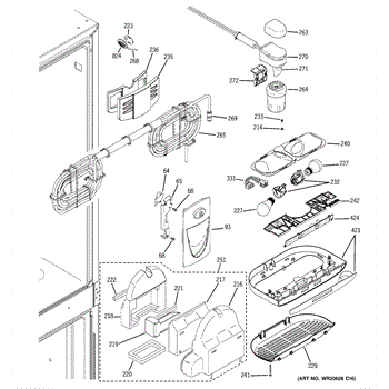 The GE Refrigerator Water Filter Housing and Tube Assembly is an OEM part for GE refrigerators. It houses the water filter and connects it to the water supply line, ensuring clean and filtered water is dispensed.