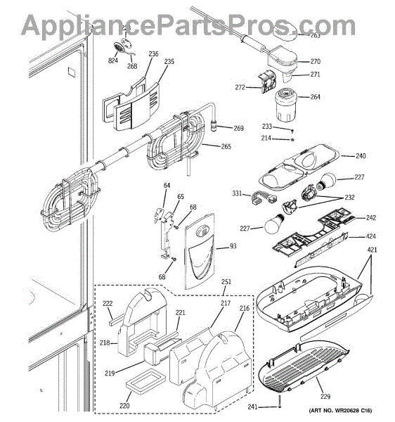 The Dispenser Assembly is an OEM replacement part for GE refrigerators. This actuator is responsible for controlling the functions of the refrigerator's dispenser, allowing you to dispense water or ice.