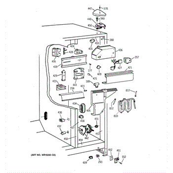 This water tank is the internal reservoir that stores and chills water for the refrigerator dispenser. Replacing a damaged tank helps restore proper dispenser flow and prevents water from pooling inside the fresh food compartment. What it does: