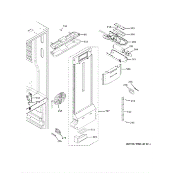 The Damper Assembly is an OEM component specifically designed for GE refrigerators. This assembly is located within the fresh food compartment and functions to control airflow and temperature regulation.
