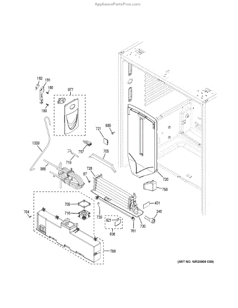 The Fresh Food Evaporator Cover with Deli Drawer Fan is an OEM part for GE refrigerators. Located inside the refrigerator compartment, this assembly helps properly circulate cool air throughout.