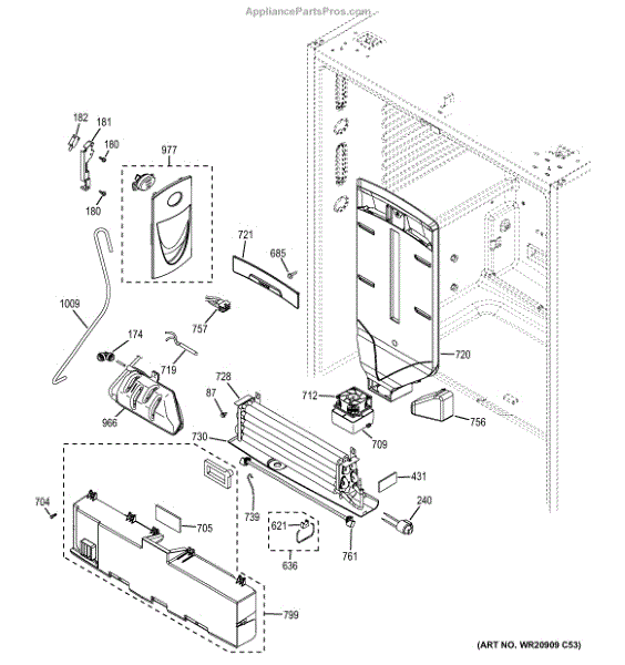The Dispenser Assembly is an OEM replacement part for GE refrigerators. This actuator is responsible for controlling the functions of the refrigerator's dispenser, allowing you to dispense water or ice.