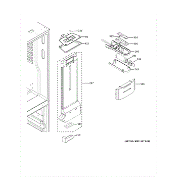 The Damper Assembly is an OEM component specifically designed for GE refrigerators. This assembly is located within the fresh food compartment and functions to control airflow and temperature regulation.