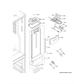 The Damper Assembly is an OEM component specifically designed for GE refrigerators. This assembly is located within the fresh food compartment and functions to control airflow and temperature regulation.