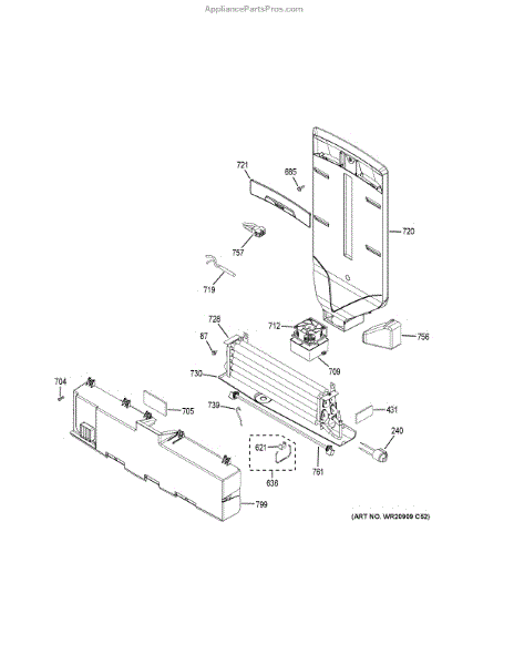 The Refrigerator Evaporator Cover is an OEM replacement part for GE refrigerators. This insulation shield covers evaporator coils to distribute airflow.