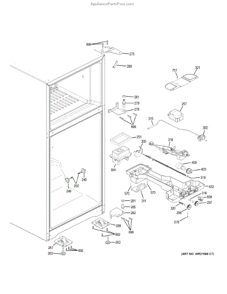 This top hinge and pin assembly supports the refrigerator door at the upper corner and provides the pivot point for smooth opening and closing. Replacing a worn hinge restores proper alignment and a consistent, reliable door seal.
