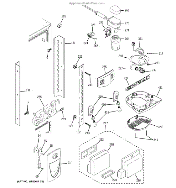 The GE Refrigerator Water Filter Housing and Tube Assembly is an OEM part for GE refrigerators. It houses the water filter and connects it to the water supply line, ensuring clean and filtered water is dispensed.