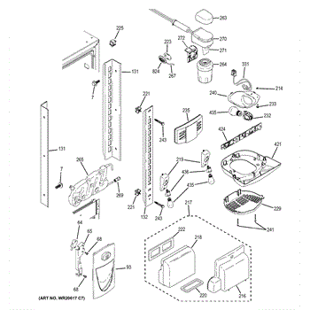 The GE Refrigerator Water Filter Housing and Tube Assembly is an OEM part for GE refrigerators. It houses the water filter and connects it to the water supply line, ensuring clean and filtered water is dispensed.