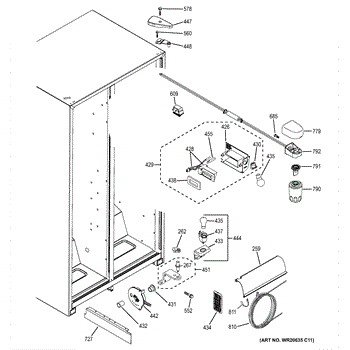 The cold water reservoir is an OEM replacement part for GE refrigerators. It serves a dual purpose, holding the supply of cold water needed for both the ice maker and water dispensing functions. This ensures that each ice cube is formed from chilled water and that cold water is always ready to be dispensed. Causes of a bad reservoir can include cracks, fractures, or leaks developing in the plastic over time due to repeated filling and draining. Mineral deposits or contamination of the water supply can also compromise performance. Symptoms of an issue include: