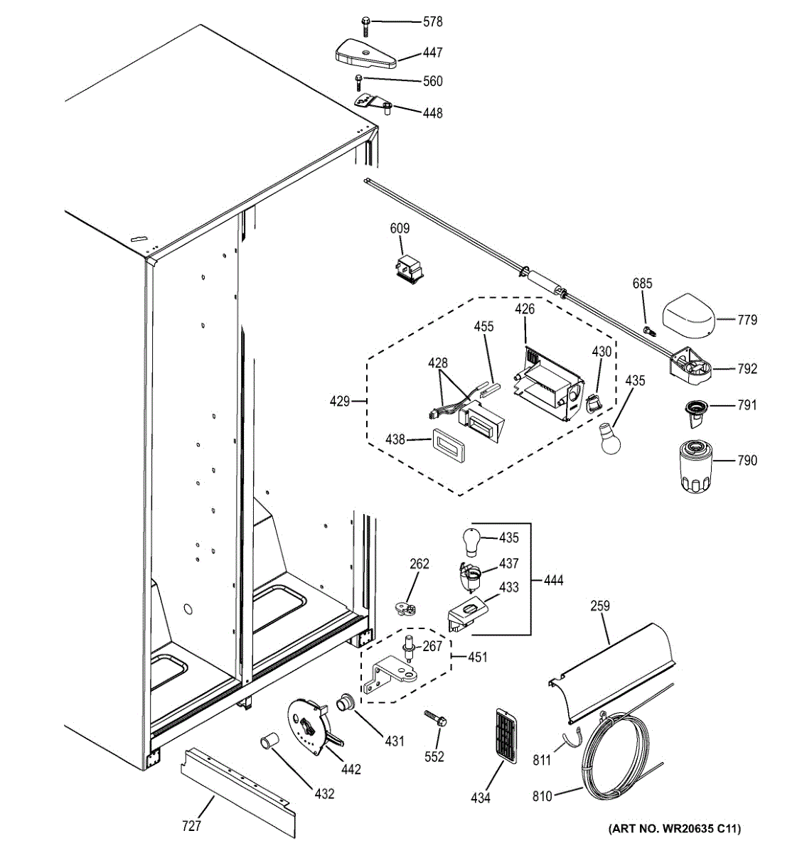 The cold water reservoir is an OEM replacement part for GE refrigerators. It serves a dual purpose, holding the supply of cold water needed for both the ice maker and water dispensing functions. This ensures that each ice cube is formed from chilled water and that cold water is always ready to be dispensed. Causes of a bad reservoir can include cracks, fractures, or leaks developing in the plastic over time due to repeated filling and draining. Mineral deposits or contamination of the water supply can also compromise performance. Symptoms of an issue include: