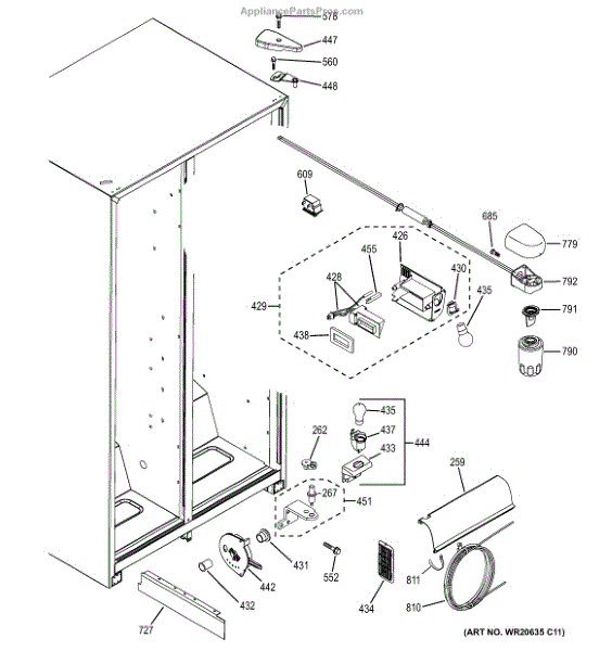 The cold water reservoir is an OEM replacement part for GE refrigerators. It serves a dual purpose, holding the supply of cold water needed for both the ice maker and water dispensing functions. This ensures that each ice cube is formed from chilled water and that cold water is always ready to be dispensed. Causes of a bad reservoir can include cracks, fractures, or leaks developing in the plastic over time due to repeated filling and draining. Mineral deposits or contamination of the water supply can also compromise performance. Symptoms of an issue include: