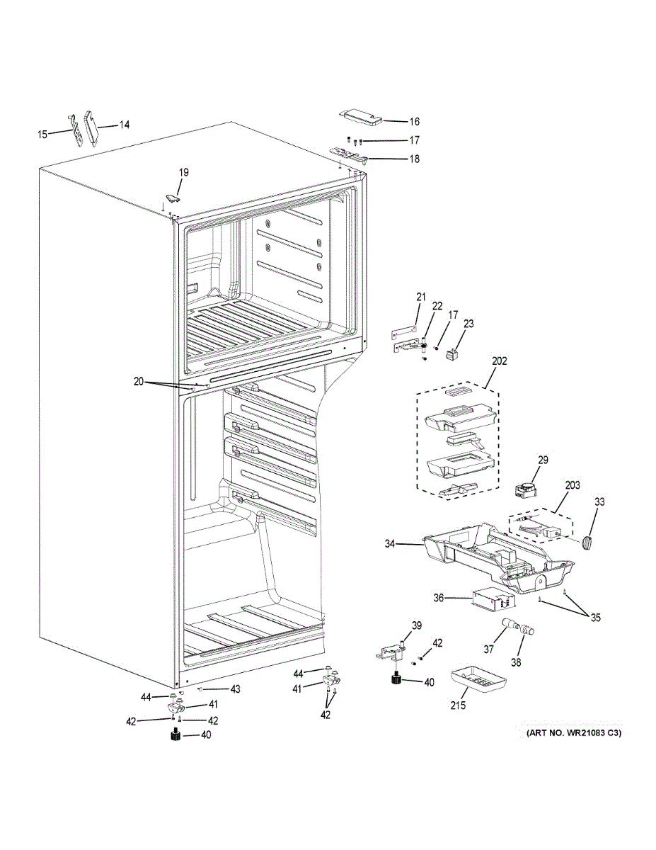 The Cover Top Hinge is an OEM component specifically designed for GE refrigerators. It forms a protective cap that covers the top refrigerator hinge and mounting hardware.