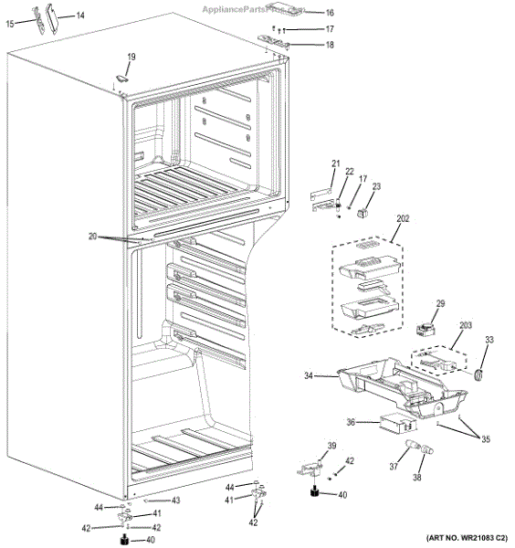 The Bottom Hinge is an OEM component specifically designed for GE refrigerators. It acts as the main pivot point that allows the door to smoothly and reliably open and close.