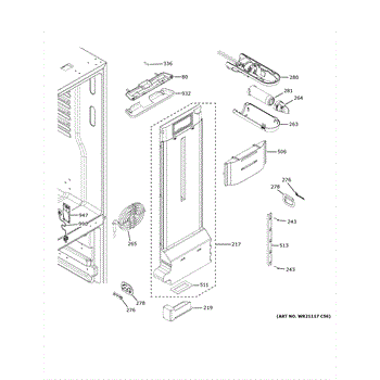 Parts for Ge GWE19JMLKFES: Fresh Food Section Parts